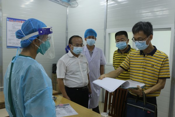 苏古发对许曙一行莅校表示热烈欢迎,并陪同走访了东大门、隔离留观室、门诊部、图书馆、泽园餐厅、志道苑学生公寓、体育馆,调研考察了校园出入管理、发热人员就诊转运、学校集中隔离观察运作、异常情况报告、师生健康日检、学生公寓防控、图书馆防控、体育锻炼场所防控、食堂用餐防控、食品安全管理等内容。