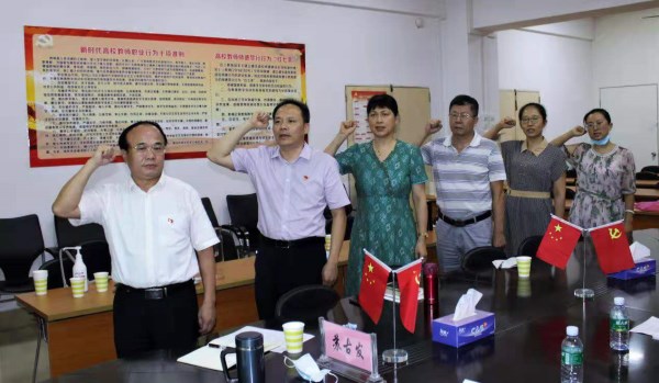 苏古发带领在场教师重温入党誓词,回顾历史岁月,坚定入党初心。他对商学院会计系教工党支部的组织生活会相关工作表示肯定,认为商学院的党员教工能结合自身党史学习教育所得,对工作中的问题进行深入剖析;能从党史学习教育中找到并明确今后努力的方向,切实做到了“学有所思、学有所悟、学有所获、学有所用”。苏古发还对商学院的党史学习教育提出了以下几点建议:一是要深刻学习领悟习近平总书记关于开展党史学习教育的重要意义。他指出,党史学习教育不仅仅是一个活动,更是一个永恒的主题。教师们要学会从党史学习教育中汲取奋进力量,更好地完成自身工作;二是要从党的历史学习中深化对党的信赖,坚定对党领导一切的信念。做到以史为镜、以史明志、知史爱党、知史爱国;三是要用好红色资源、讲好红色故事,从党的奋斗历史,特别是从黄学增、谭平山等优秀革命校史人物身上汲取力量,传承红色基因,全面落实立德树人的根本任务。