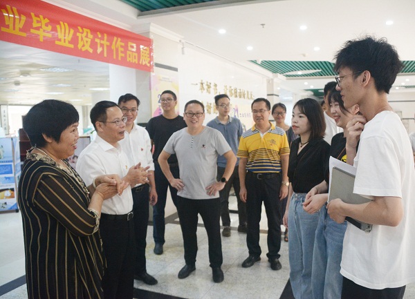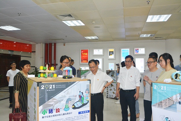 5月24日上午,机电工程学院工业设计专业2021届学生毕业设计作品展在学校图书馆二楼展厅开展。学校党委副书记、纪委书记王恒胤莅临参观指导。