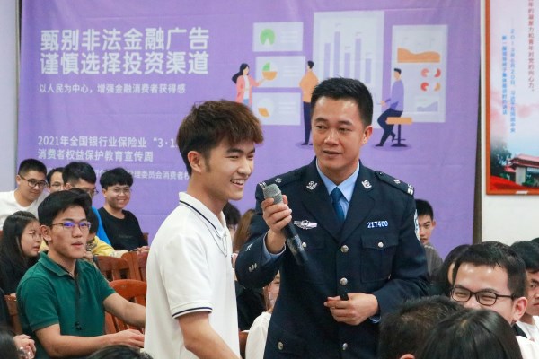 为深入贯彻落实习近平总书记重要指示和全国“断卡”行动工作部署要求,切实提高师生防骗意识和能力,我校安保处、学生处、校团委联合湛江市反诈骗中心、湛江银保监分局开展“金融知识普及宣传、倡导理性消费观念、严厉打击电信诈骗、维护社会诚信体系”为主题的宣传教育活动。本次活动主要针对2020级辅导员、各班班长及团支书参加此次宣传教育活动。