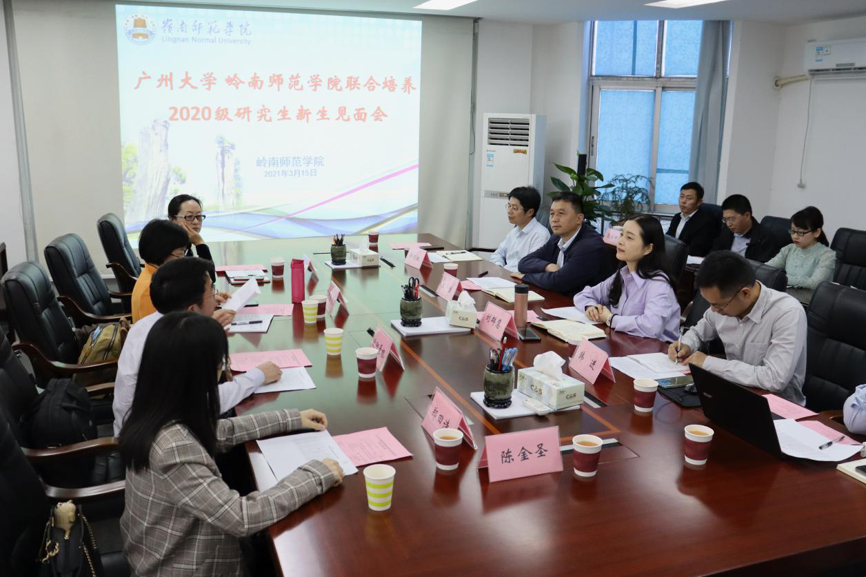 岭师新闻中心讯:3月15日下午,学校召开与广州大学联合培养研究生2020级新生见面会,学校副校长王胜出席会议。广州大学外国语学院院长王晋军一行4人,岭南师范学院科研处负责人、相关二级学院分管研究生工作副院长、联合培养研究生校内指导老师,10位联合培养研究生参加会议。会议由科研处处长刘群慧主持。