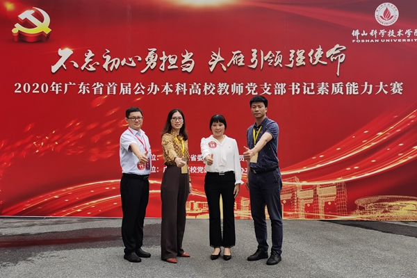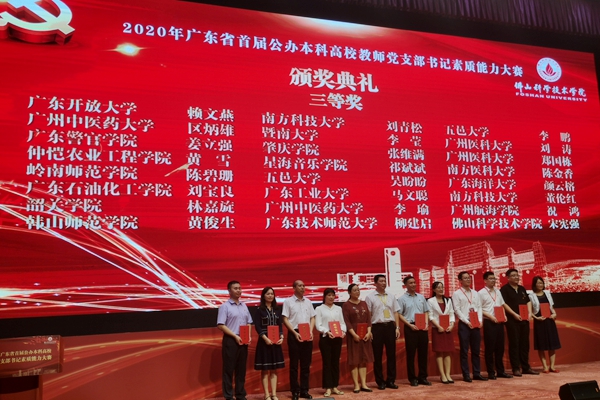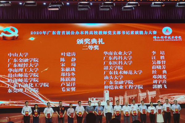 9月26日,由省委教育工委主办、省高校党建研究会公办本科分会承办的“2020年广东省首届公办本科高校党支部书记素质能力大赛”在佛山科学技术学院举行。我校马克思主义学院形势政策课与办公室党支部书记陈跃瀚、物理科学与技术学院教工第二党支部书记陈碧珊分获大赛二等奖、三等奖。