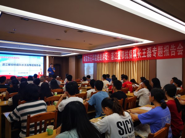 9月12日上午,我校党委统战部联合民盟岭南师范学院基层委特邀请我市中心人民医院内科icu副主任、援鄂抗疫队长王磊在学校园府酒店三号会议室为学校统战成员和学生党员代表作了一场抗疫专题报告会。由民盟岭师基层委主委王锂韫主持。