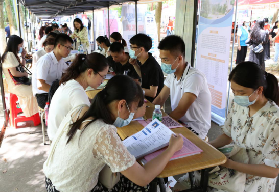 7月4日,由岭南师范学院主办的2020届毕业生供需见面活动(暨“送岗圆梦情暖学子”专场)在校园雷阳区举行。