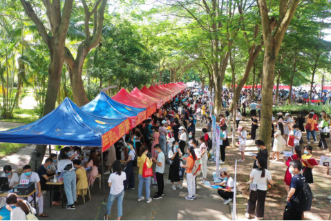 据悉,本次招聘会共吸引了近3750名毕业生参加,现场乡镇中小学吸引了大批毕业生报名,此次招聘岗位和应聘人数多,国内疫情防控仍不能松懈,加上天气炎热容易中暑,针对种种复杂情况,招生与就业处联合多个职能部门做好了充分的准备工作,按照高校新冠肺炎疫情防控指南和相关规范标准,精细化落实校园招聘过程中的各项疫情防控工作,共同为校园招聘会助力,为毕业生顺利就业助力,同学们为能参加此次招聘会感到十分激动,纷纷表示要好好把握机会,好好表现,争取能够应聘成功。