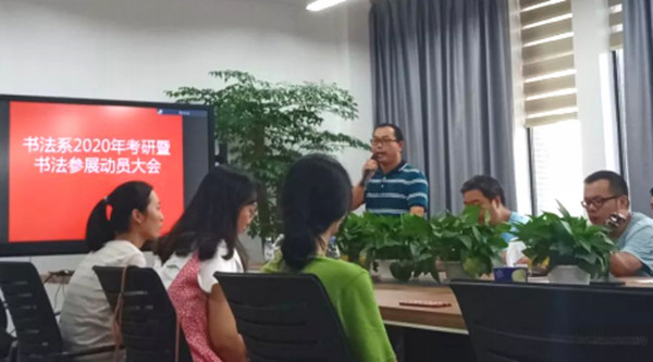 美术与设计学院积极为考研的同学提供指导和便利条件。书法系专门召开了2020年考研暨书法参展动员大会,2016级、2017级有考研意向的同学参加。在会上,邀请往届考研成功的同学为大家介绍考研复习经验。大家的积极性被充分调动了起来,呈现出你争我赶的局面。