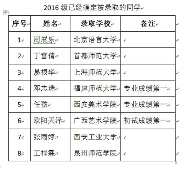 截止发稿日期,美术与设计学院书法专业已经确定有8人被北京语言大学、首都师范大学、西安美术学院等高校录取。2016级书法专业共有27人参加考研,上线12人,上线率达40%;目前已落实的录取8人,录取率达30%。美院院长乔志强介绍,这是书法学专业办学以来考取研究生最多的一年。
