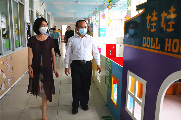 开园当日上午,副校长苏古发来到幼儿园,检查了孩子们入园、吃早餐、晨读情况,察看了幼儿园临时观察点、学生课室、寝室等地方。苏古发指出,幼儿园要认真按照学校疫情防控工作要求,营造让家长、孩子安全放心的教学生活环境。各部门之间要相互配合,把防控措施落实到位,确保幼儿园复课平稳有序。