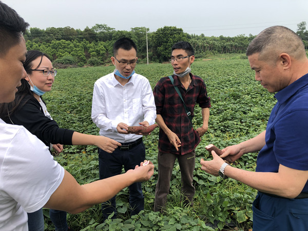 农村科技特派员团队在吴川市覃巴镇沙田村了解番薯种植情况