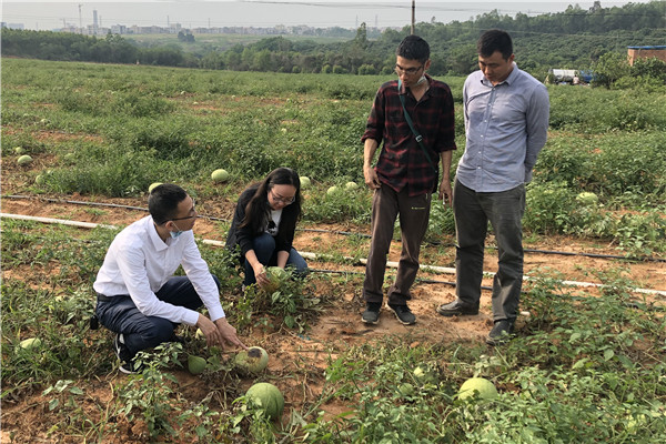 农村科技特派员团队在吴川市覃巴镇沙田村了解西瓜种植情况