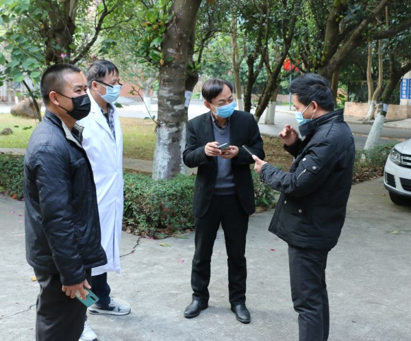 赫云鹏(右二)正在协调疫情防控工作(赵宇清摄)