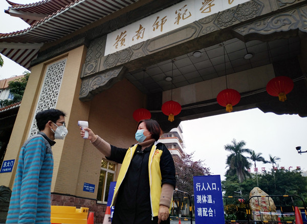 “面对疫情,管住入口、外防输入成为关键。”然而,摆在岭南师院保卫处处长程子建面前有一个难题,学校几十名校卫队员,除了要分出人手经常巡逻校园,还要分三班倒在东大门和南大门24小时不间断值守,如何把好疫情防控的“入口关”略显人手不足。在刘福瑞的带动下,连日来,学校南大门、东大门出现越来越多的志愿者们,他们主动请缨,用实际行动加入这场战“役”,暂时缓解了学校保卫处人手不足的压力。