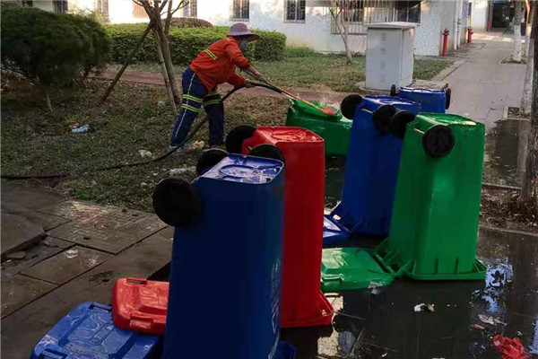 清洁校园内的垃圾桶(后勤处供图)