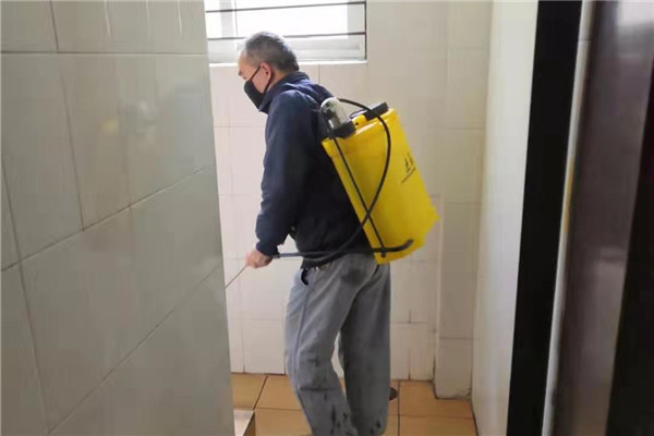 对教工宿舍区进行全面消毒(后勤处供图)