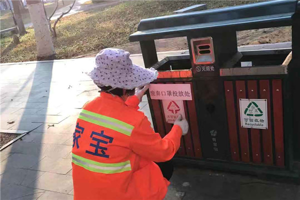 张贴“废弃口罩专用垃圾桶”使用标识(后勤处供图)