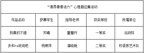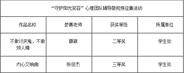 我校师生在省2019年度高校学生心理健康教育系列活动获奖一览表: