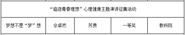 “追逐青春理想”心理健康主题演讲征集活动一等奖