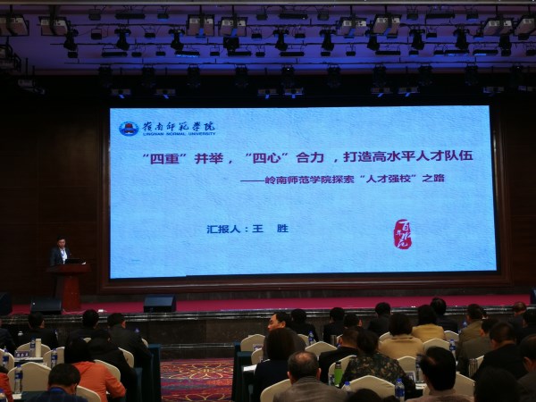 我校与长春师范大学、江苏第二师范学院、河北民族师范学院、衡阳师范学院一同获邀,围绕论坛主题作院校经验交流。近年来,在学校党委的有力领导下,学校人才工作取得了良好的成效,得到省教育厅的高度评价,为学校亮点工作之一。在论坛上,王胜代表学校做题为“‘四重’并举,‘四心’合力