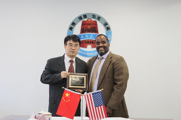 安德鲁•戴尔一行表示很高兴来到岭南师院,他从地理位置、师资生源、专业特点、科研发展、教学实践等方面介绍了美国弗吉尼亚联邦大学的基本情况。安德鲁•戴尔指出,美国弗吉尼亚联邦大学办学仅50年,但目前约有3万2千名学生,2500多名教职员工,来自101个国家的学生。在美国,该校规模较大,共有13个院校,2个校区。教育学院则有800多名在读研究生,128名教职员工,科研经费位列全校第二位,每年多达2800多万美元。该校是第一类科研型的高等院校,也是美国为数不多着眼于与社区的科研和教育合作的一所学校。安德鲁•戴尔表示,他们学校非常注重和我校的合作,希望两校秉承“十年树木,百年树人。”的理念,一起合作“树更多的人”。
