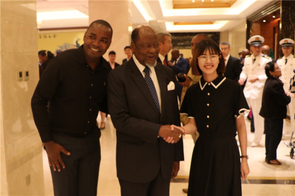 陈思与莫桑比克前总统若阿金•希萨诺握手