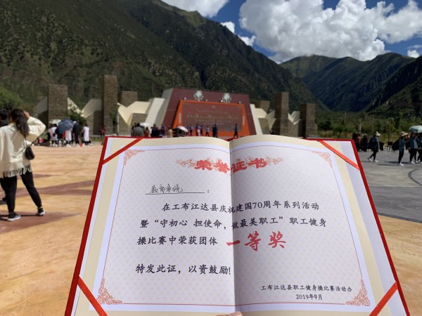 9月6日,雪域高原传来喜讯,岭南师范学院2019年西藏支教队9名队员,刚进藏不久,在西藏林芝工布江达县“守初心,担使命,做最美职工”健美操比赛上,夺得了第一名的好成绩。