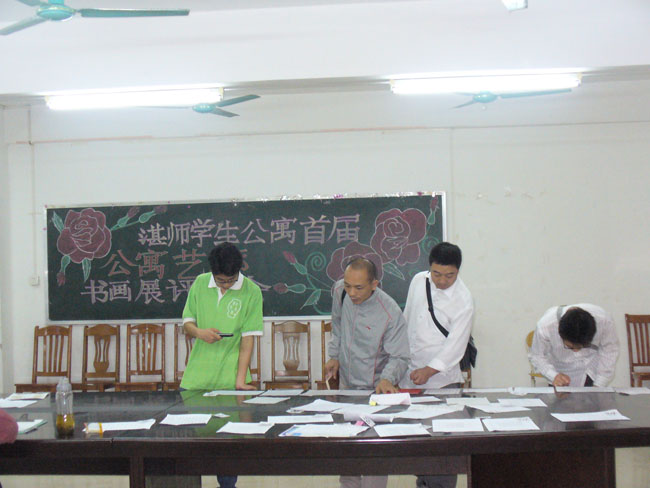 湛师新闻网4月24日讯 打造公寓艺术长廊,创建公寓文化品牌。今天上午,我校学生公寓在尚德苑文化活动室举行首届公寓艺廊书画展评审会,美术学院的冉承笔、李吾铭、晋雅欣三位老师担任评委。