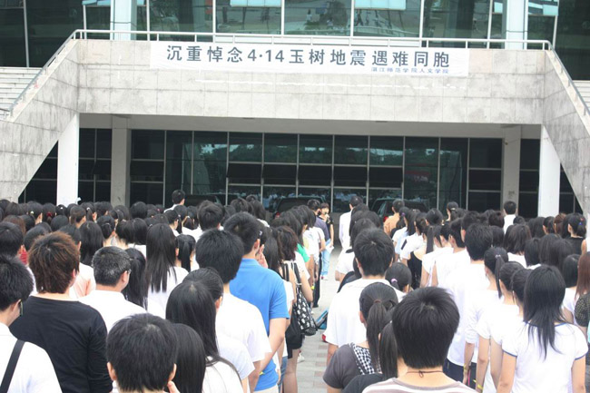 湛师新闻网4月22日讯 玉树同胞遇难,举国深切哀悼。为积极响应国务院决定,表达对青海玉树地震遇难同胞的深切哀悼,昨天,体科院举行了悼念活动。辅导员钟召春、刘天明、宋鹏三位老师也参加了活动。