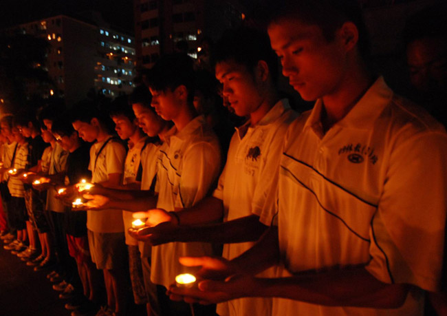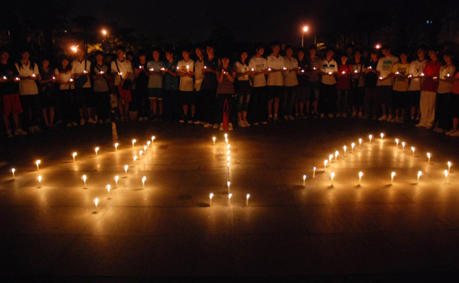 在沉重的气氛中,该院师生精心设置,手捧蜡烛,烛光闪闪,围绕成“心形”,心手相连为玉树遇难同胞默哀三分钟。祈祷玉树不倒,为生者祈福,向逝者默哀。期间,师生还纷纷踊跃签名,表达对玉树同胞的祝福与祈祷。该院钟召春老师向学子们介绍了本次玉树地震的整体概况,表达对遇难同胞深深的哀思与祝福,鼓励他们重新站起来,齐心协力重新建设美好家园。并鼓励全体学子以实际行动积极奉献爱心,与玉树同胞共渡难关,向死者致哀;向生者祝福。
