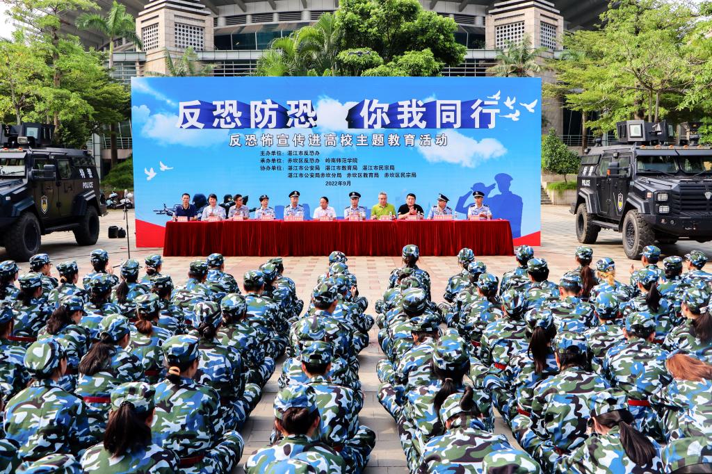学校历来高度重视反恐维稳工作,始终坚持人民至上、生命至上工作理念,强化联防联控群防群控,筑牢校园安全防线。赤坎区副区长、区公安分局局长郑调表示,“反恐宣传进高校”活动旨在通过多种形式的宣传活动,增强大学生对《中华人民共和国反恐怖主义法》的认识和了解,不断加强自我管理,自觉抵制恐怖主义和宗教极端思想渗透,切实提高反恐意识和能力。