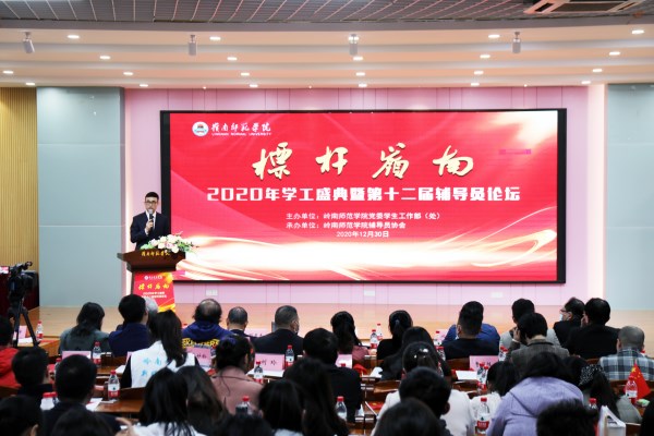盛典播放了学校2020年辅导员队伍建设回顾视频。今年新入职辅导员代表激情朗诵原创诗文《我是岭师辅导员》,辅导员代表小组高昂歌唱《辅导员之歌》,全体学工人高歌齐唱《不忘初心》,展现了我校全体学工人情怀不改、初心不变的使命担当。台下学生代表纷纷欢呼为学工人加油,气氛热烈。