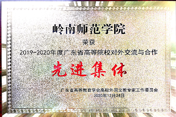 我校获评“广东省高等院校对外交流与合作先进集体”