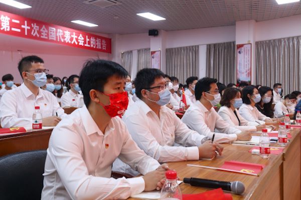 学校青年师生代表收听观看大会直播(张雯婷摄)