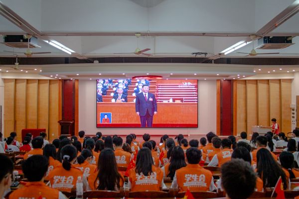 10月16日上午10点,中国共产党第二十次全国代表大会在北京人民大会堂隆重召开,习近平代表十九届中央委员会向大会作报告。学校400多名青年师生代表在教三311和211教室集中观看大会,各二级学院团委、学生会以多种形式组织团员青年在会议室、教室、宿舍等进行收听收看。师生们以饱满的热情和热烈的期盼之情,认真收看大会开幕盛况,聆听大会报告,畅谈学习体会,迅速掀起学习党的二十大精神的热潮。校团委书记林仲彦出席会议。