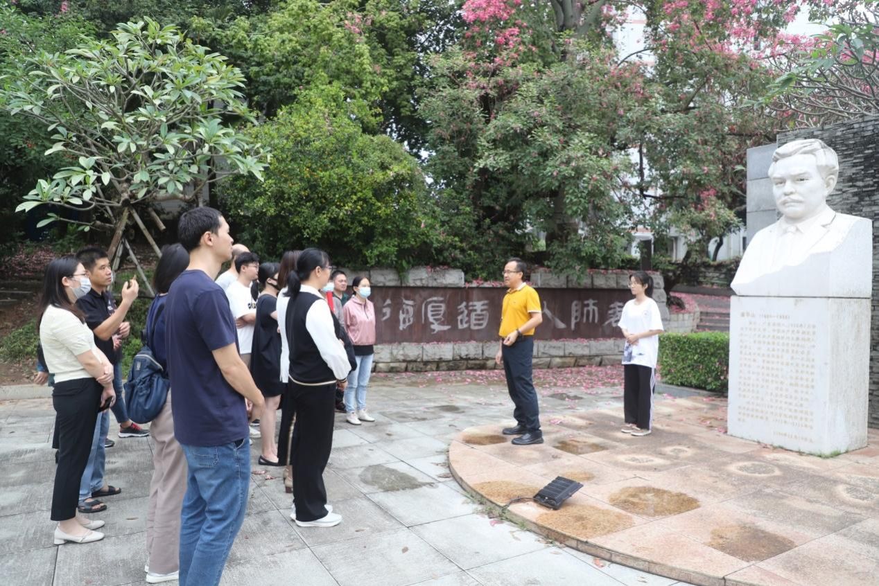 日前,值秋风和暖、秋花烂漫之际,图书馆综合服务报刊党支部、信息技术党支部到谭平山纪念园开展“学习红色校史人物,传承先辈红色基因”主题党日活动。