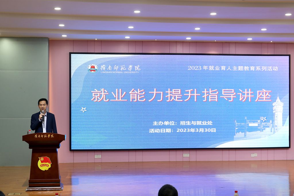 招生与就业处各科室负责人,各学院就业辅导员老师及300多名学生参加讲座活动。