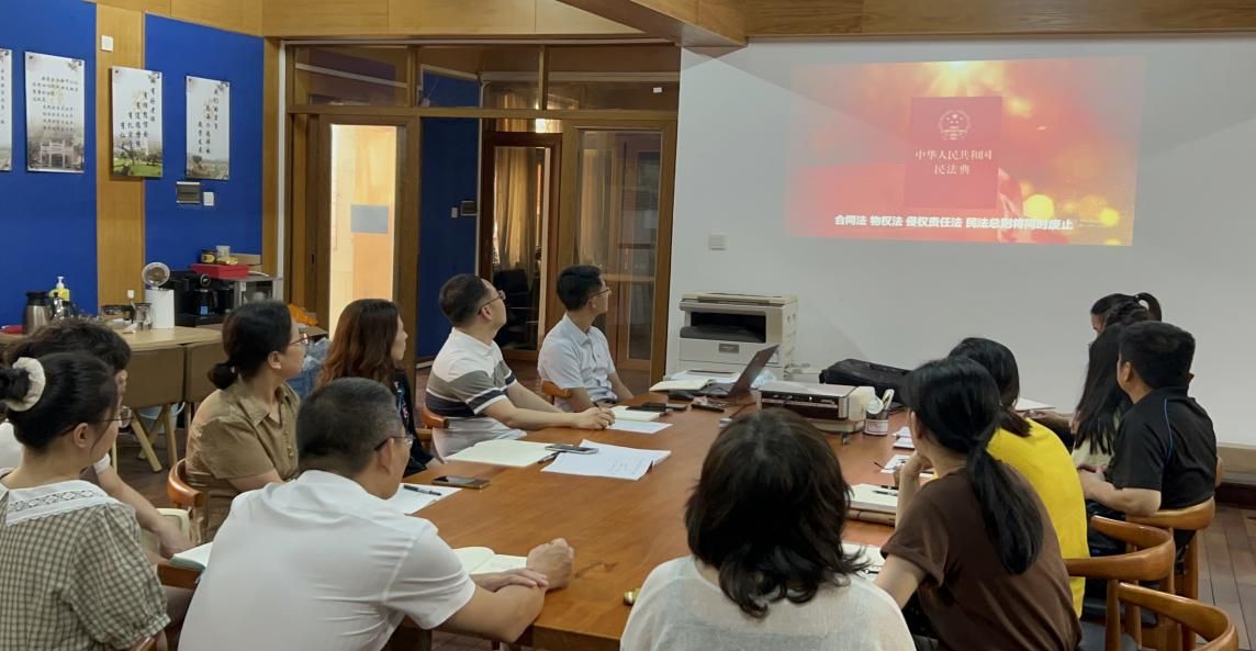 2023年5月是我国第三个“民法典宣传月”,为深入学习贯彻党的二十大精神和习近平法治思想,进一步加强《中华人民共和国民法典》普法宣传工作,不断提高教发评中心全体人员法治意识和法治素养。5月23日,教发评中心全体人员在榕楼305进行《中华人民共和国民法典》专题学习。