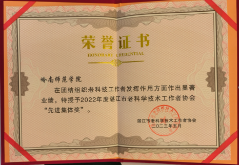 2023年6月10日,湛江市老科技工作者协会第一届第二次理事会暨会员大会顺利召开,我校被表彰为2022年度湛江市老科学技术工作者协会“先进集体奖”,食品科学与工程学院老师陈冰被表彰为2022年度湛江市老科协先进个人。