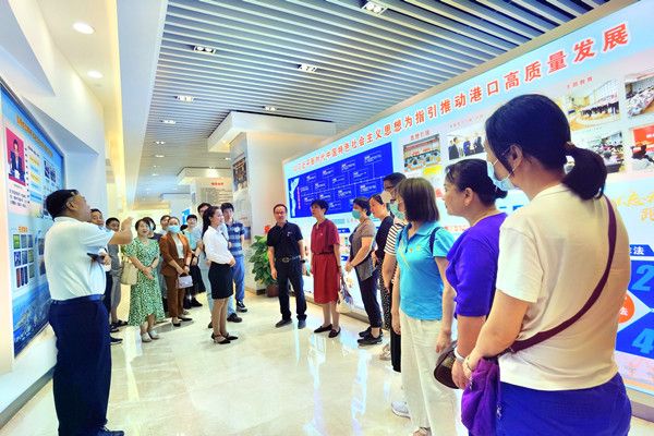 随后,通过讲解和交流,我们学习了湛江港务局以习近平新时代中国特色社会主义思想为指引,推动港口高质量发展的党建亮点和特色。湛江港务局注重党建品牌建设,党支部示范点建设做到了“五好”,一个支部一品牌做到了“五个围绕”,发挥了支部共建的“三个效果”和党员责任区的“四个作用”。通过党建+生产经营,党建+安全环保,党建+成本控制,党建+创新创效等一系列的“党建+活动”,实现了党建和业务工作的深度融合,取得了良好的效果。