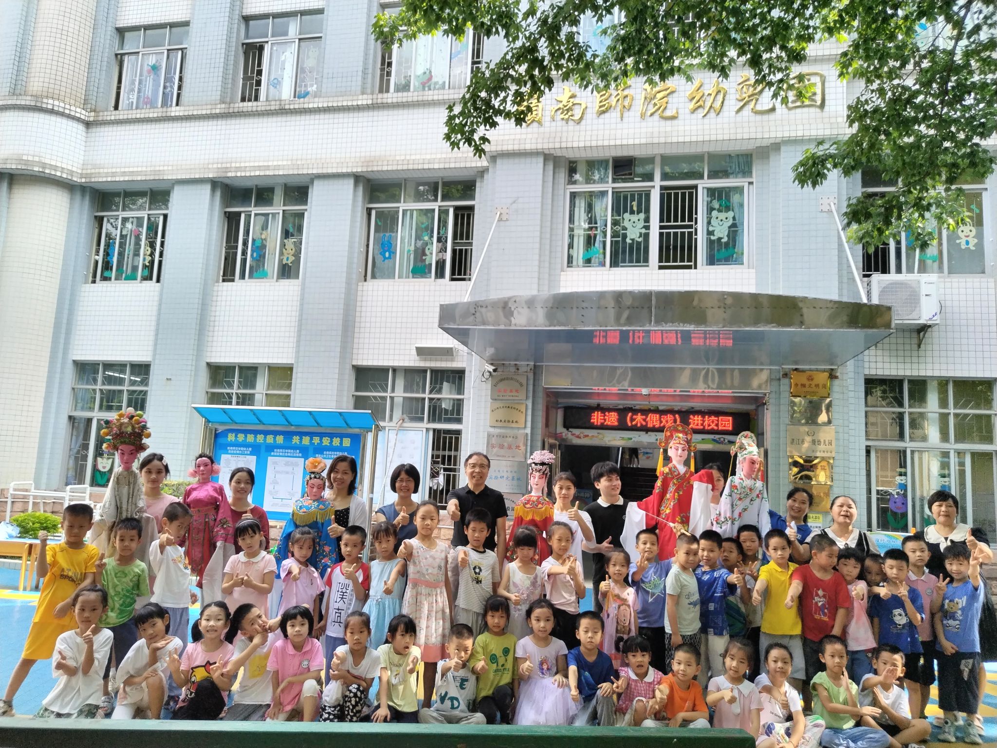 6月28日上午,音乐与舞蹈学院副院长刘厚宇、副教授黎一飞及大学生艺术实践(木偶戏)工作坊的同学一行走进幼儿园,开展“非遗(木偶戏)进校园 文化润童心”活动,让小朋友们零距离感受非遗的魅力,贯彻落实习近平新时代中国特色社会主义思想,根据中共中央办公厅、国务院办公厅《关于全面加强和改进新时代学校美育工作的意见》精神,弘扬优秀传统文化,坚持以美育人、以文化人。幼儿园全园师生参加了活动。