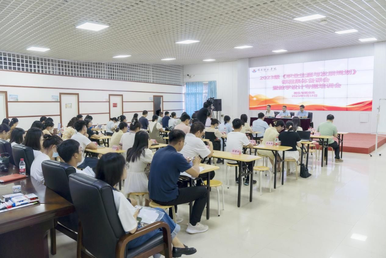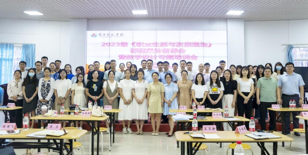 为加强《职业生涯与发展规划》课程建设,提升教学质量,9月18日,学校在教三111举行2023级《职业生涯与发展规划》课程集体备课会暨教学设计专题培训。此次培训邀请了国家人社部创业培训卓越讲师卢辉老师做教学设计的专题培训。招生与就业处处长李粤出席会议并致辞,负责课程的全体授课教师共60余人参加了此次会议,会议由招生与就业处副处长周明俊主持。