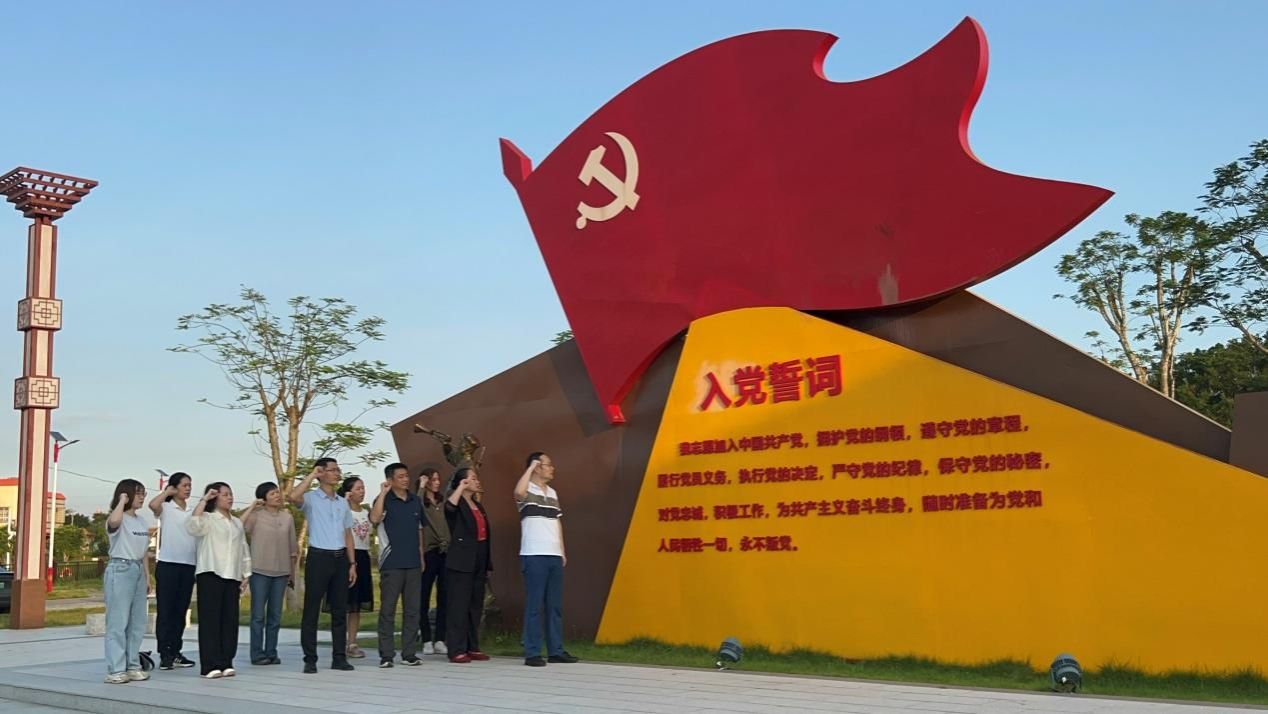 参观学习后,在党支部书记吴涛的领誓下,全体党员在中塘纪念馆入党誓词碑前,面对鲜红的党旗,一起高举右手庄严宣誓。铿锵恢弘的誓词催人奋进、掷地有声,震撼了在场的每一位党员,一字一句,神圣而豪迈,不忘初心,表达了对党的无限忠诚。