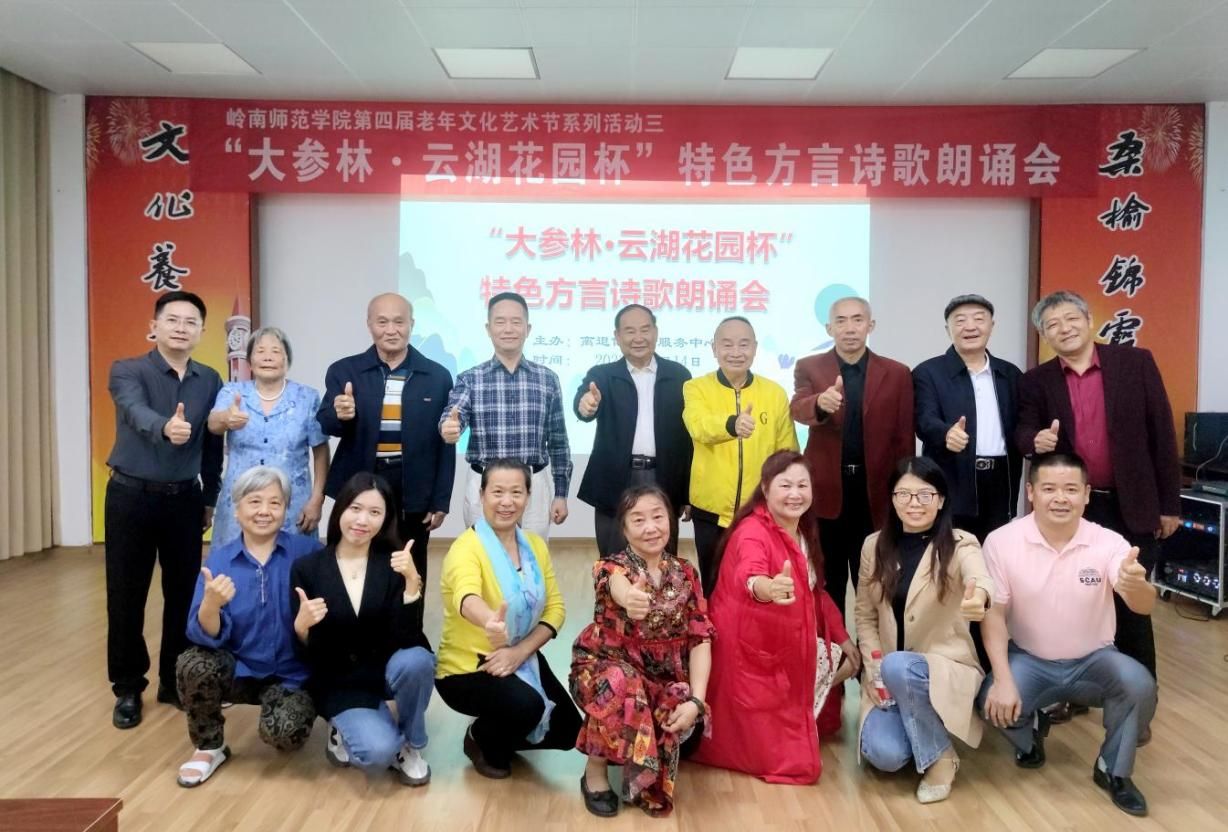 本次“大参林·云湖花园杯”特色方言诗歌朗诵会精彩纷呈,方言种类丰富,朗诵内容积极向上、朗诵过程趣味横生。如吴有强老师用廉江海话有声有色朗诵的《我们一起走过》,让大家感受到他对岭师深沉的热爱;莫南孙老师用廉江雷州话给我们朗诵并吟诵的《卓文君的数字诗》,让我们感受到古人对爱情的执着;陈春常老师用湖南安化话朗诵的《深秋晨韵“的”字歌》,让我们感受到家庭中合作的温馨;除了海话、雷州话、湖南安化话外,还有东北话、兰州话、高州话、桂林话、粤语等方言。活动共有10名教工报名参加朗诵,现场气氛活跃,欢乐不断,让大家沉浸其中,感受方言之美。