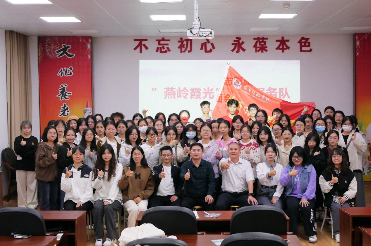 潘冬华向队员们介绍了“菜单式养老服务”及“燕岭霞光”志愿服务队的背景、由来。她指出,“菜单式养老服务”是学校为师生办实事十大项目之一,是离退休人员服务中心、校团委、法政学院和校友企业共同推出养老服务、志愿服务、社会实践和创新创业“四位一体”的养老服务新品牌,包括聊天谈心、校园漫步、棋类休闲、保健按摩等活动项目,“燕岭霞光”志愿服务队主要是为居住在岭师校园内的离退休教职工提供尊老助老的公益志愿服务。她表示,今后会以指导老师的身份带领“燕岭霞光”志愿服务队不断前行,在服务好老同志的同时引领同学们不断成长。