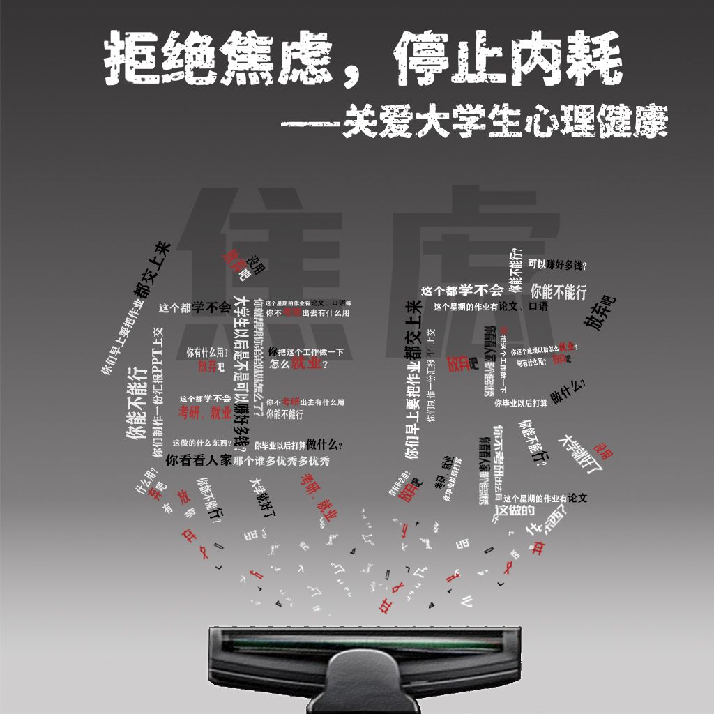 我校通过各二级学院进行全面宣传发动,鼓励同学们采用多种创新形式进行心理创作,并在创作的过程中提升学生的积极心理品质,实现大学生心理健康教育系列活动全员、全程、全方位浸润。在本次比赛中,我校心理公益广告作品颇具创意,送审的5份平面广告作品有3份获奖,实现了新的突破。