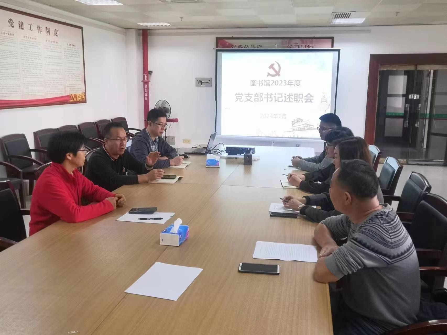 图书馆党总支党支部书记述职会在图书馆五楼会议室举行。图书馆党总支全体委员、全体党支部书记参加会议。会议由党总支书记李健彬主持。