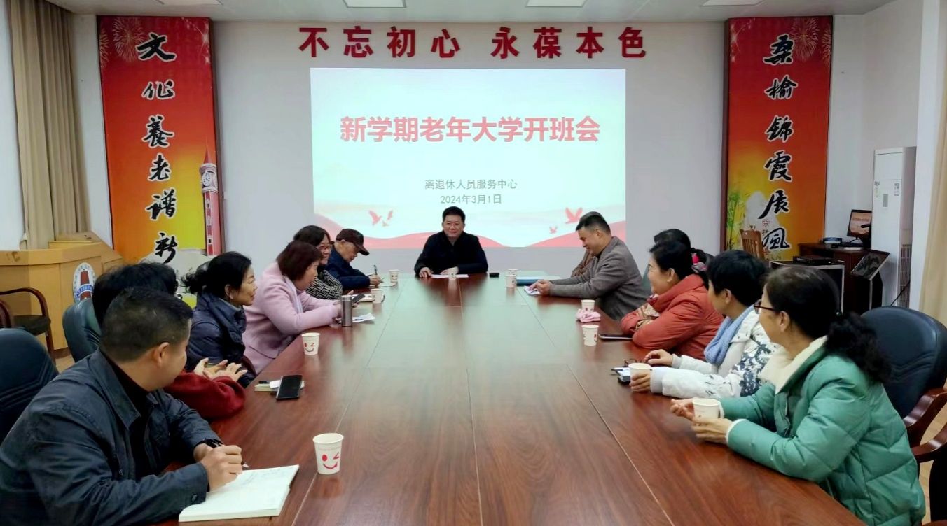 春回大地,万物复苏,新的学期在春日里拉开了序幕。3月1日下午,学校老年大学在离退休会议室召开春季学期开班会,总结上一年老年大学办学成效,部署新学期老年大学工作。会议由老年大学校长欧海清主持,老年大学副校长叶德波、裴树海,老年大学教务长余慧明,老年大学办公室主任刘汉先和各班班长参加会议。
