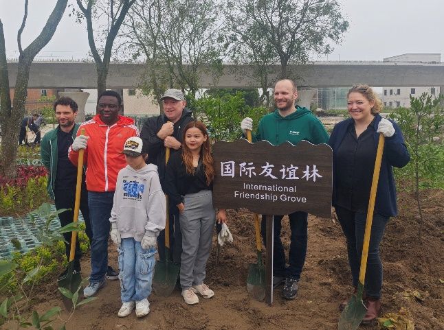 活动当天,湛江市外事局领导、湛江市各界国际友人代表以及我校外籍教师一行,迎着春日灿烂的阳光,怀揣满腔热情来到植树现场。在简短的欢迎仪式后,大家纷纷拿起铁锹,走向植树地点,用自己的辛勤劳动种下一棵棵绿植。