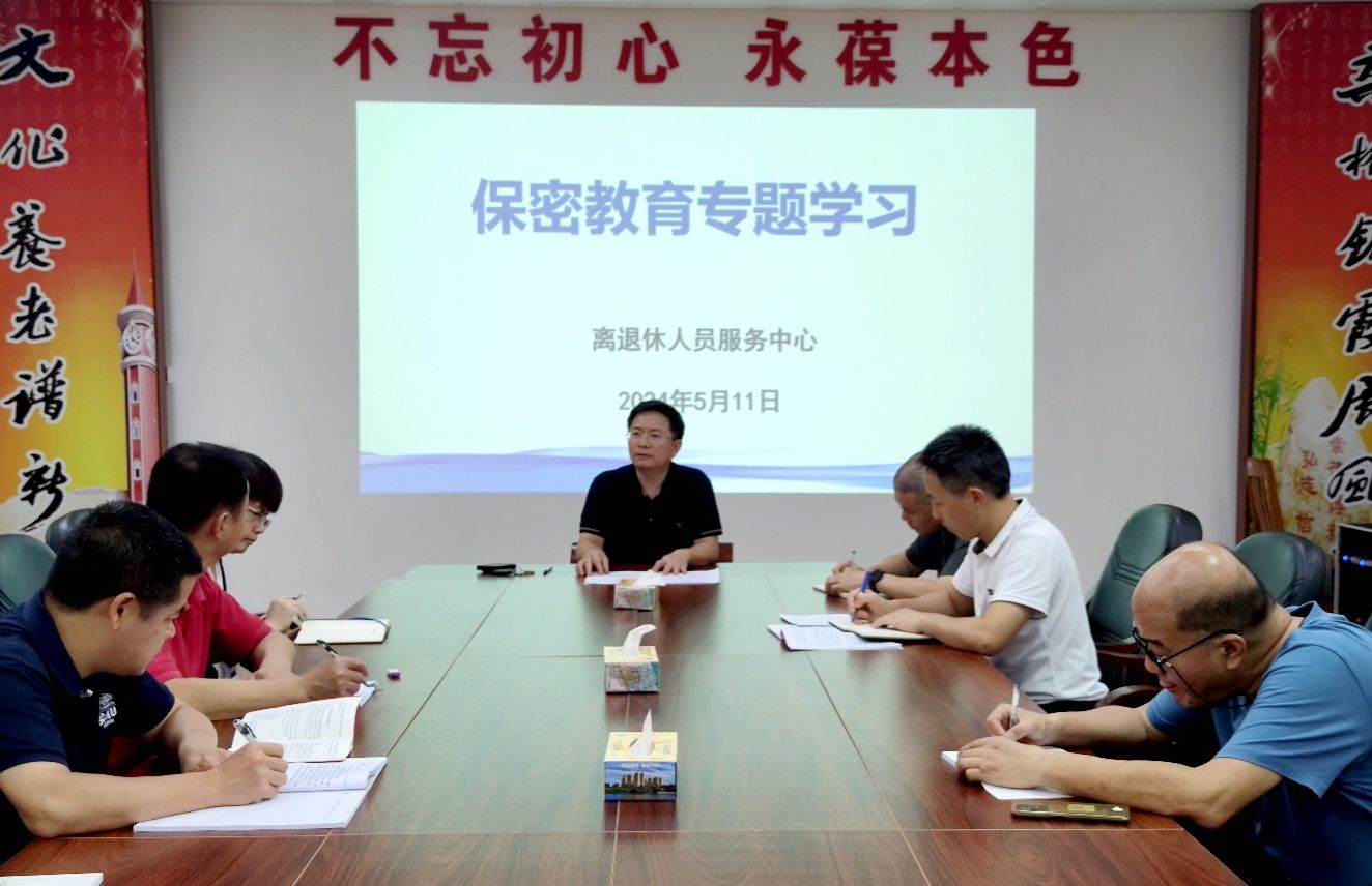 为深入学习贯彻新修订的《中华人民共和国保守国家秘密法》,树立保守国家秘密的法治观念,根据学校统一部署,5月11日上午,离退休人员服务中心在离退休会议室开展保密知识专题学习教育。活动由离退休人员服务中心党委书记、主任欧海清主持,全体工作人员参加学习。