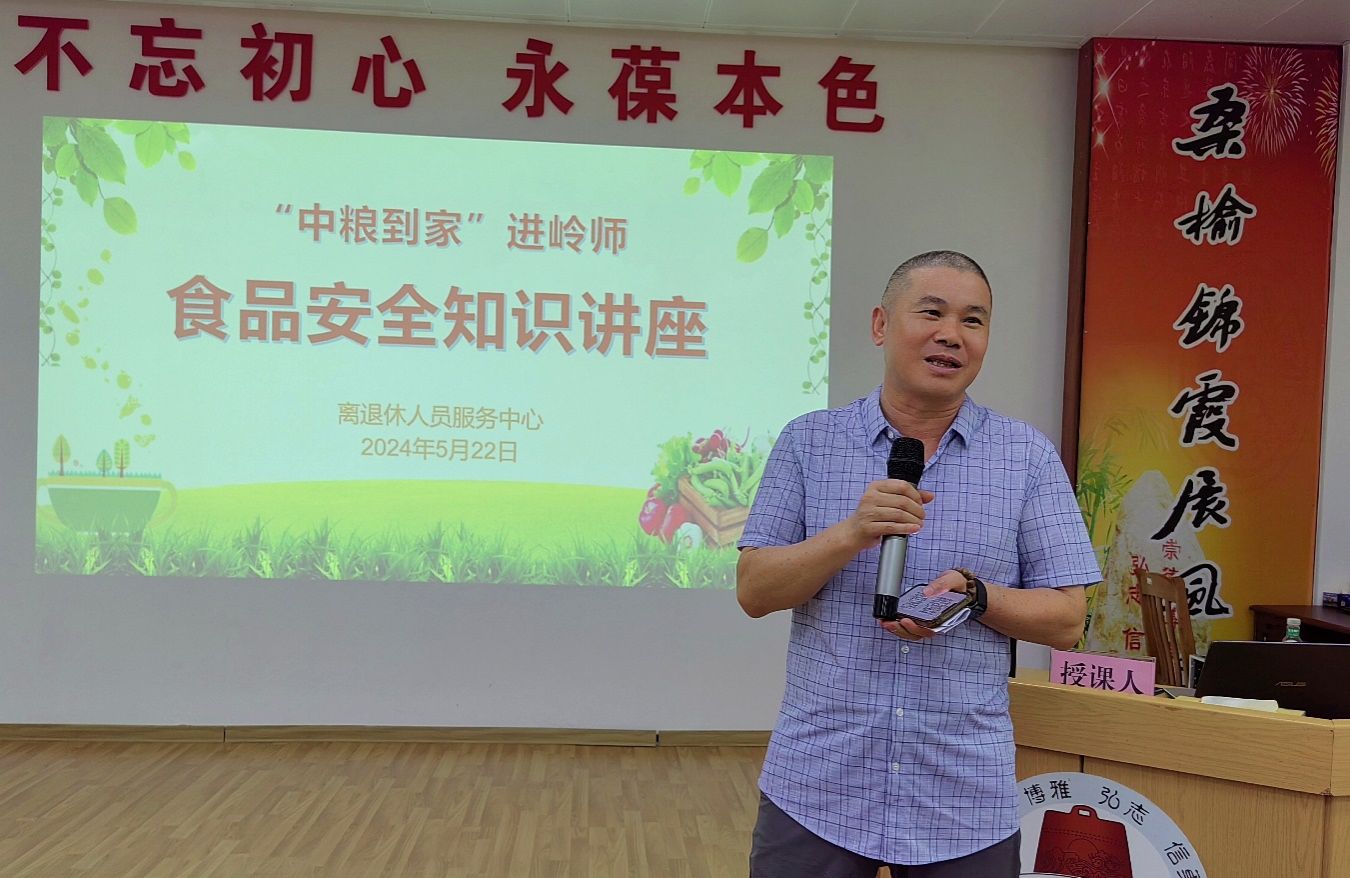 叶德波介绍,中粮集团是世界500强企业,中国最大的粮油食品企业,也是中国领先的农产品、食品领域多元化产品和服务供应商。“中粮到家”公司是中粮集团旗下品牌,主要销售福临门米、面、油等系列品牌产品。作为一个团购配送中心,主要以配送为主,省去中间商环节,收获了众多客户群体,多次获得“食品安全企业”“食品安全示范单位”“最受消费者信赖企业”等荣誉称号。他指出,“中粮到家”走进岭师开展食品安全知识讲座,既是对我们离退休工作的大力支持,也是对老同志的关心关爱。他强调,食品安全重于泰山,通过讲座可以了解掌握许多食品安全知识,希望能够激发更多的人关注食品安全问题。