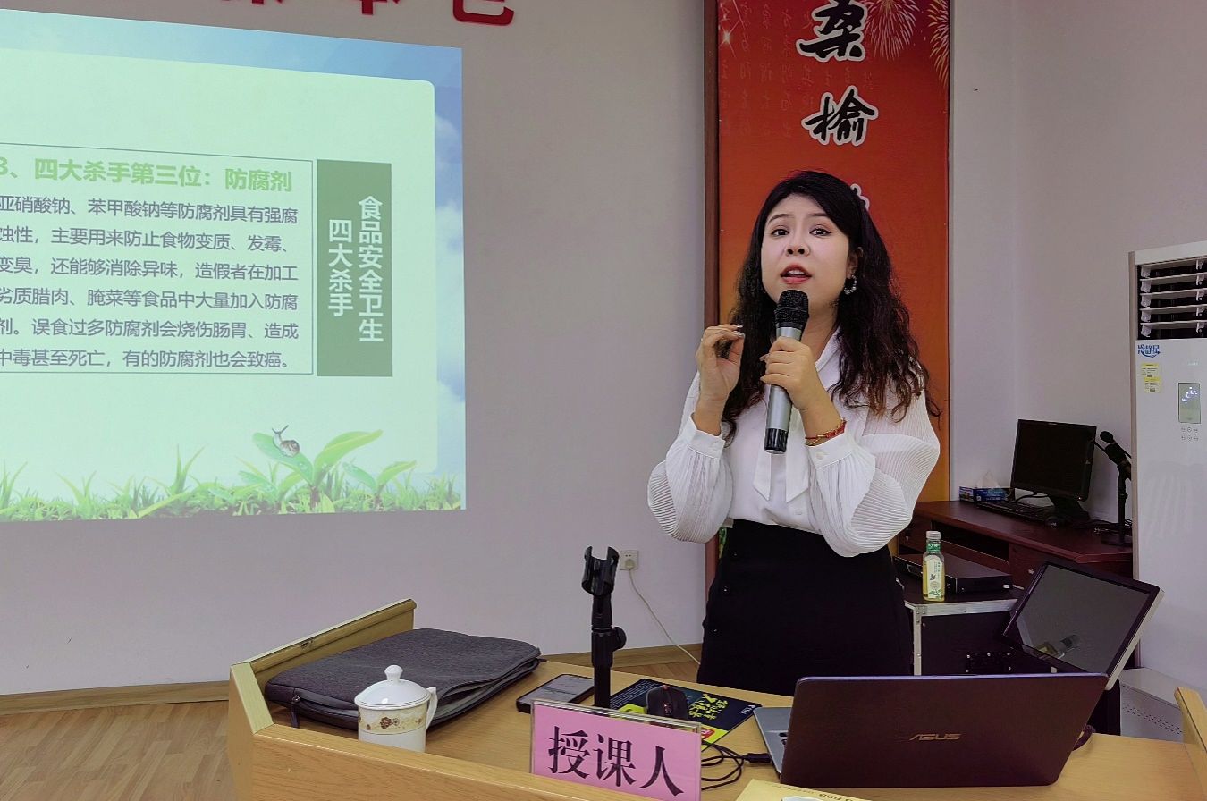 “中粮到家”湛江分公司市场部主任田新琦以通俗易懂的语言深入浅出的讲解了食品安全卫生、预防食物中毒和食品卫生安全等相关知识,强调了食品安全对于人民群众身体健康的重要性,并承诺公司将持续加强食品安全知识宣传,不断为公众健康保驾护航。她指出,吊白块、双氧水、防腐剂、硫磺是食品安全卫生的“四大杀手”。她特别针对近年来频发的食物中毒事件,深入剖析了食物中毒的类别、发生的原因、特点和临床表现,并提出了“预防食物中毒八要”防范措施。同时,她还向老同志分享了“食品卫生安全7要素”,加深了大家对食品安全的认识。